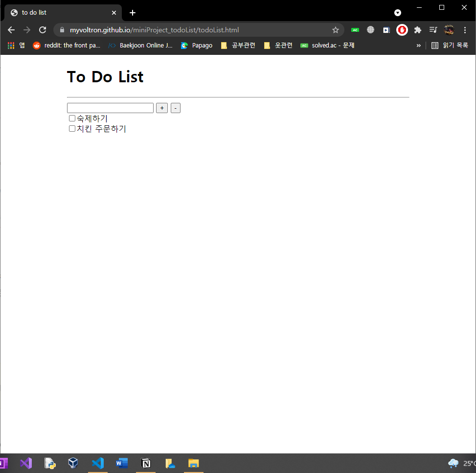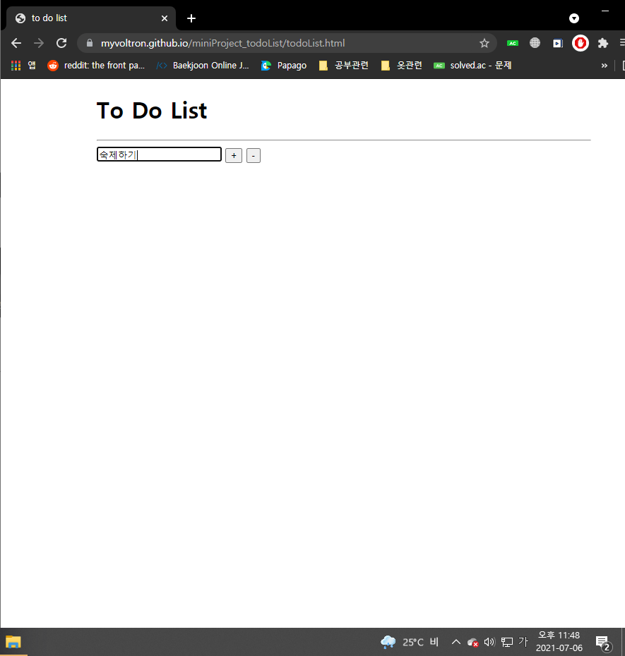 자바스크립트 기능을 활용할 수 있는 간단한 주제를 찾아보다가 할 일 목록을 만드는 것을 보았습니다.