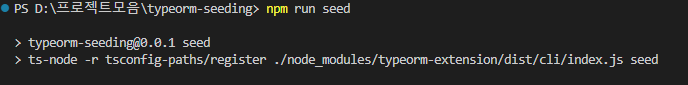 - typeorm-extension의 seed 명령어는 seeder 파일의 디폴트 경로를src/database/seeds/**/*{.ts,.js}로 간주합니다. 따로 지정할 수 있습니다.
