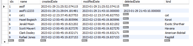 이후 npm run seed 명령어를 실행하고나서 DB를 보면 랜덤한 데이터가 생성되어 있는 것을 보실 수 있습니다.